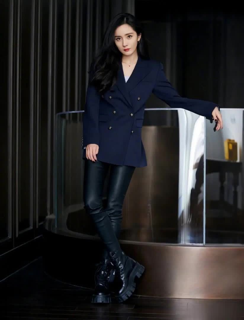 其实,西装外套的搭配方式一点也不单调,有“西装外套+牛仔裤”、“西装外套+阔腿裤”、“西装外套+运动裤”等十几种搭配方式。杨幂这身西装外套造型,运用了“西装外套+皮裤”搭配方式,演绎职场干劲的同时,又看起来酷帅无比,整体给人的感觉又飒又美,比常见的“西装外套+西装裤”造型,好看太多太多。