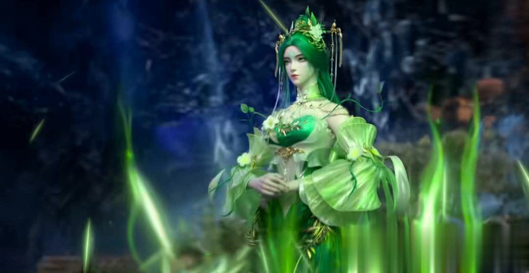 要说还是得完美啊,上一集才有紫发神胎女子,这一集就又一绿发美女惊艳登场,这建模真的吊打斗破十条街!一头绿发肤白貌美大白长腿,眼睛很大灵性十足,如同精灵一般,似有浩瀚的生命源地陪伴着她,走起路来摇曳生姿,美得不可方物,活脱脱 “精灵版生命女神”。