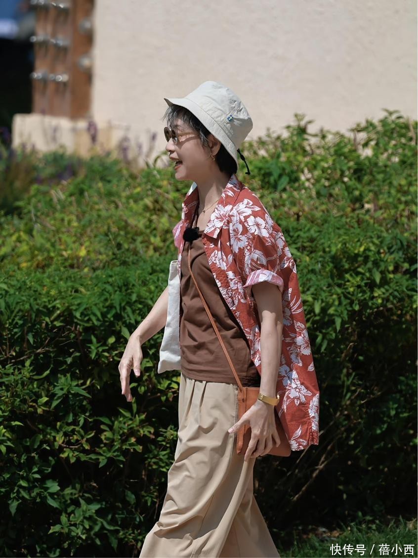 这一身穿搭乍一看更适+女性,上半身衬衫的颜色少了活力感,下身的阔腿裤颜色太深沉,年轻人穿极易显老气。